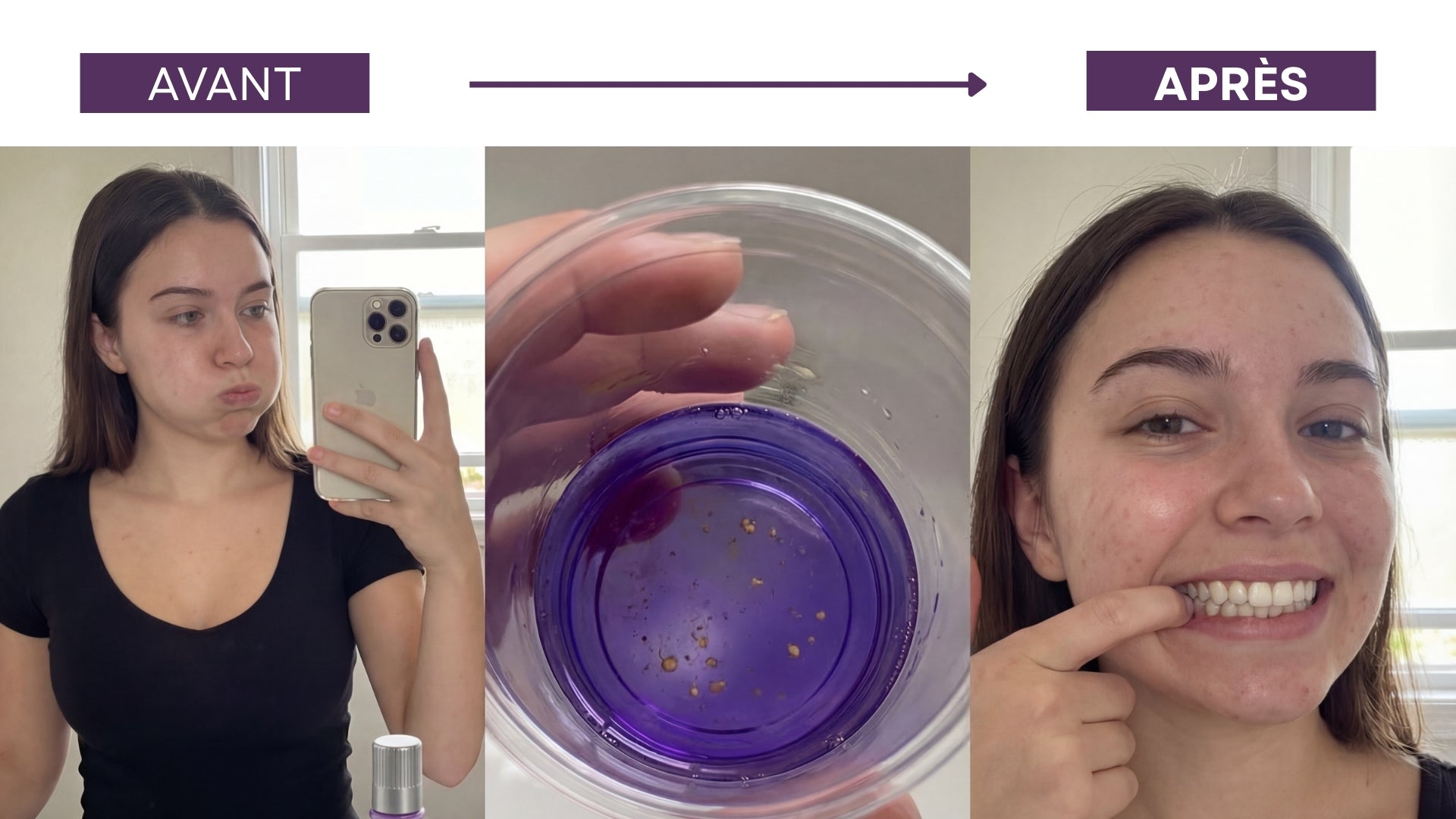 Découvrez pourquoi notre bain de bouche violet correcteur est devenu leur indispensable beauté du quotidien.